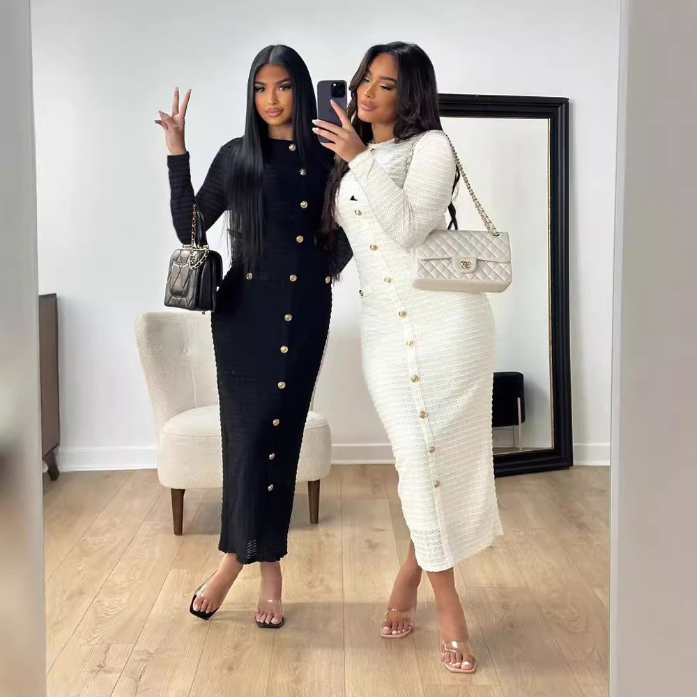 French Retro Slim Fit Slimming Knitted Long-sleeved Dress